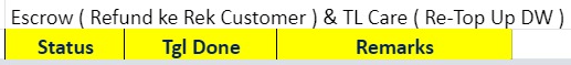 - Pada kondisi dana dikembalikan ke rekening pelanggan, EC tetap mengisi data pada GSheet Excess Balance Monitoring pada kolom biru.